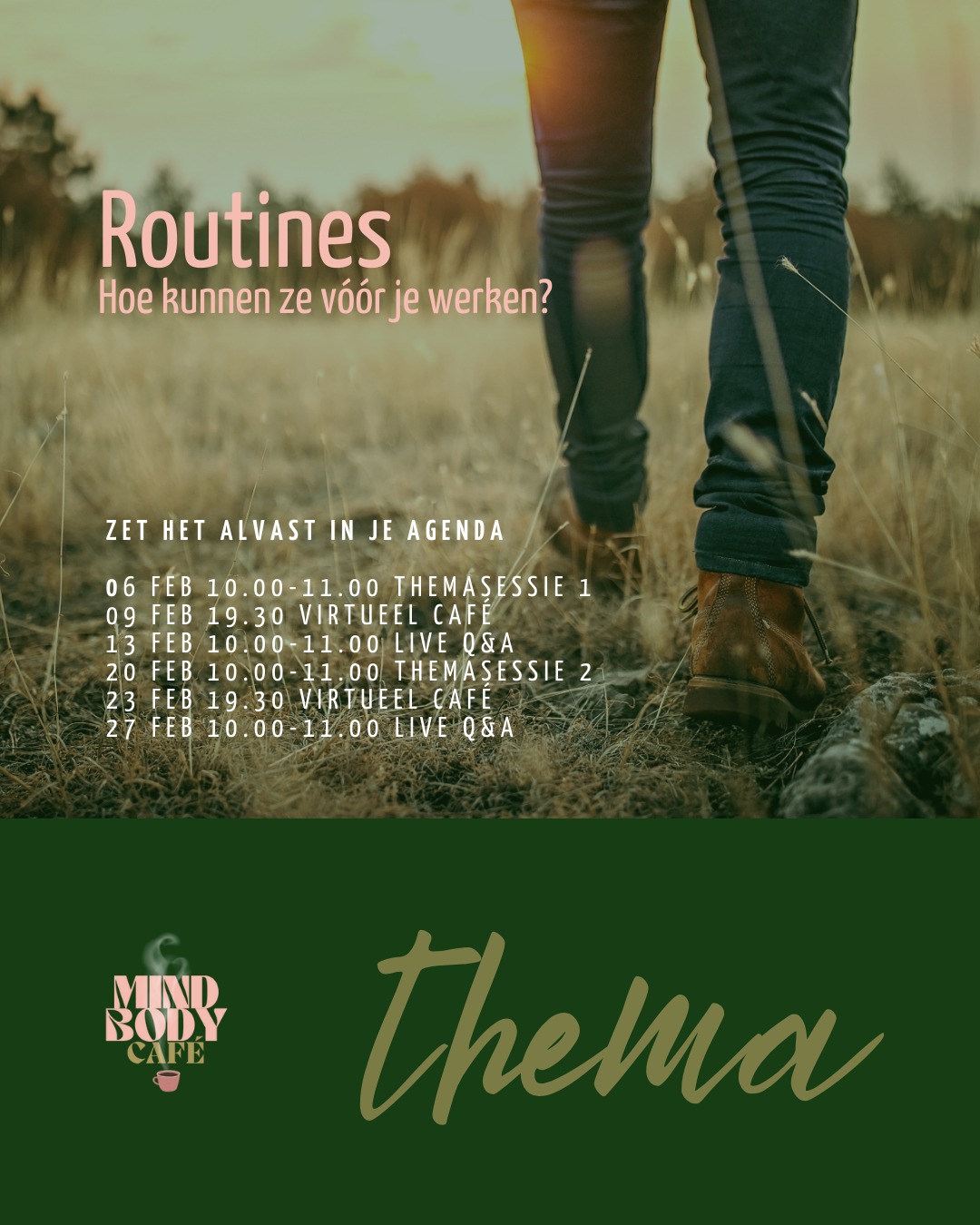 De komende weken staat het thema Routines centraal in het Mind Body Café. Een onderwerp dat voor veel mensen met aanhoudende klachten herkenbaar is én ook uitdagend of ingewikkeld kan zijn.